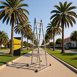نردبان تاشو که از دو یا چهار نردبان آلومینیومی تشکیل شده اند که به وسیله لولای فولادی بهم متصل شده اند. بسیار کم حجم و غیر قابل جدا شدن.